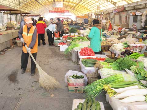4、保潔員每天早晨提前一小時,對市場進行全面打掃:晚上市場關閉后進行徹底清掃,所有垃圾全部堆放在指定位置。